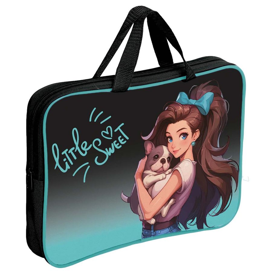 Папка для художника, А3, 34*46,5*8 см, ткань, на молнии вокруг, 1 отделение, цвет черный/мятный, Sweet puppy, КОКОС, 251664