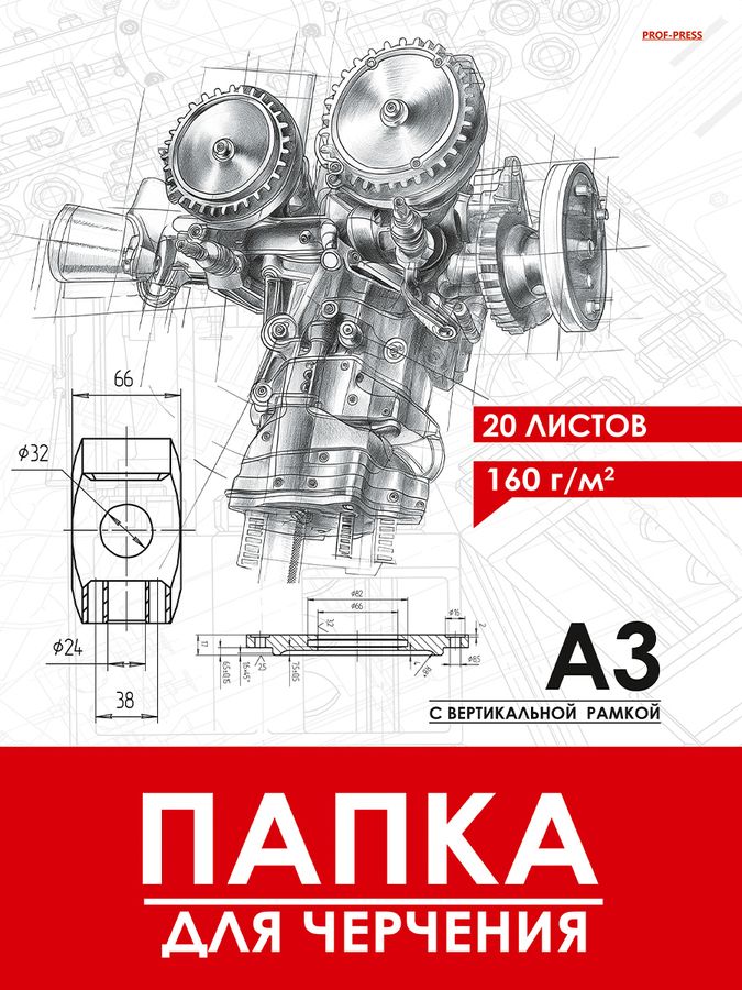 Папка для черчения от компании "Проф-Пресс" содержит 20 отдельных листов бумаги для выполнения чертежно-графических работ карандашами, тушью и чернилами. Внутренний блок с вертикальной рамкой, плотность: 160г/м2, формат А3