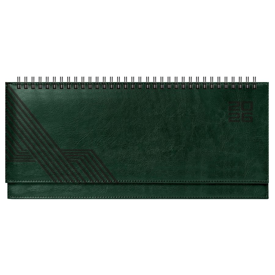 Планинг датированный 2026 ESCALADA, 310x130 мм, 64 л., арт. 70326/ 15 САРИФ ТЁМНО-ЗЕЛЁНЫЙ (кожзам: твёрдый переплёт с поролоном, материал обложки: искусственная кожа "Сариф"; декор: блинтовое тиснение; способ крепления блока: евроспираль открытая; вн. блок: 64 л., белый офсет 70 г/м², печать в две краски (линия), справочный материал: есть; перфорация углов блока: нет; форзац: печать пантоном; персонализация возможна: да; индивидуальная упаковка: ПЭТ-пакет)