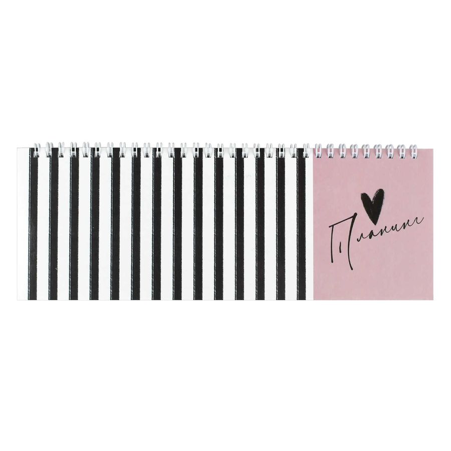 Планинг недатированный арт. 71592 ЧЁРНО-БЕЛЫЕ ПОЛОСКИ / 290х100 мм, 64 л., гребень по длинной стороне, полноцветная печать, глянцевая ламинация. Блок - белый офсет, 65 г/м², печать в одну краску,
