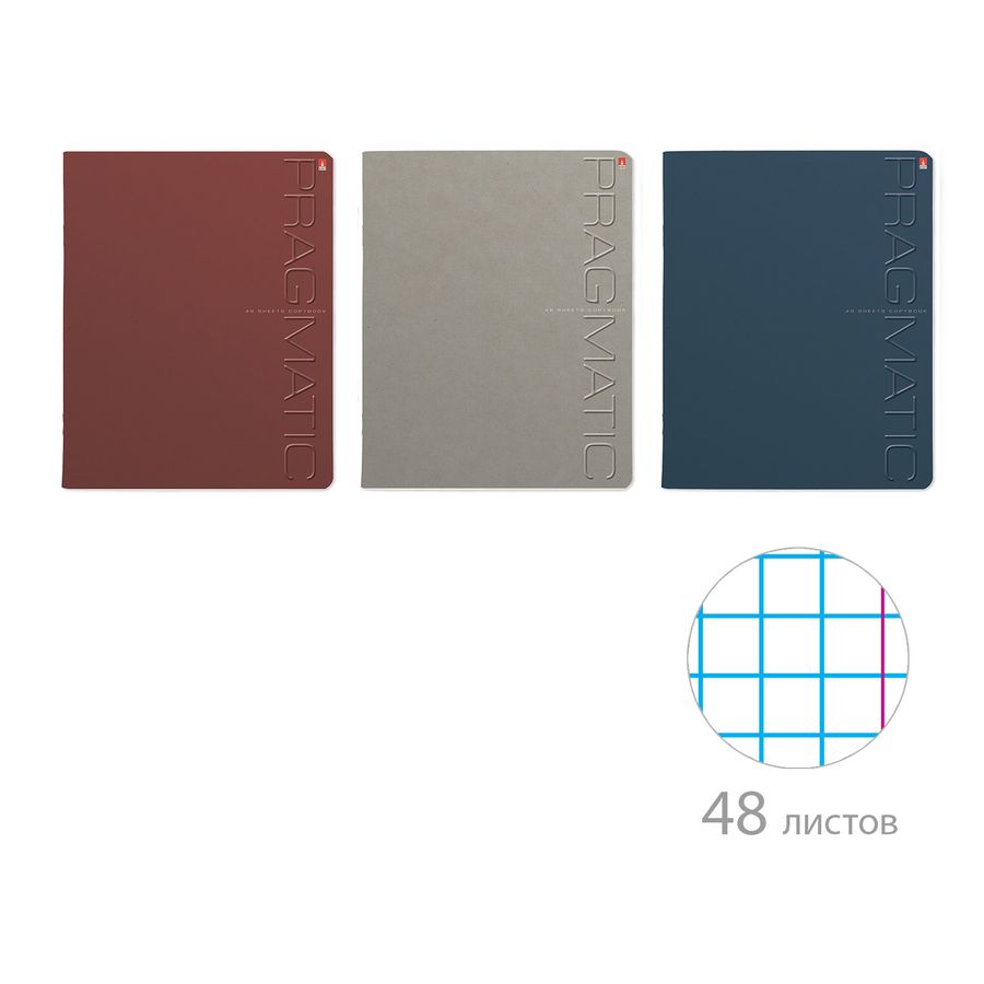 Нейтральная серия PRAGMATIC. Обложка этой тетради выполнена в духе сдержанной классики. Цветовая гамма – серый, коричневый и черный цвет. Обложка имеет стандартный формат А5. Чистоцеллюлозный картон плотностю 230 г/кв.м не содержит Cl и других вредных компонентов. Скругленная форма исключает заломы уголков. Полиграфическая технология конгрева – рельефного тиснения - позволила сделать декоративные надписи объемными. 48 листов блока для записей выполнены из качественной офсетной бумаги. Листы обладают идеальной белизной, гладкостью. Плотность не менее 60 г/кв.м. Линовка страниц в клетку совпадает с лицевой и оборотной стороны листа. Поля выделены красным цветом.