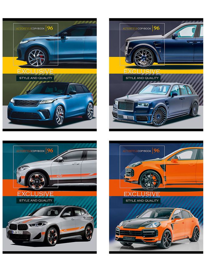 Тетрадь 96 листов клетка Представительские авто 2 блок мелов.обл Remix 96-7318