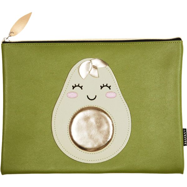 Папка для тетрадей "deVENTE. Avocado" A4 (33x24x1,5 см) на молнии сверху, матовая искусственная кожа, с бегунком-листочком, с аппликацией в виде авокадо, зеленая с золотым