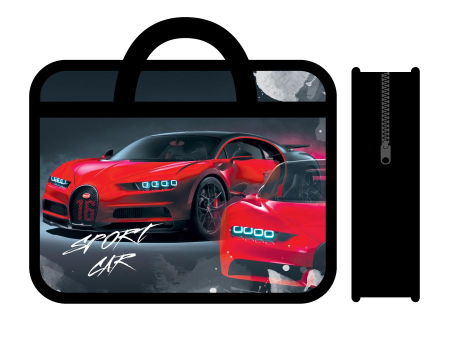 Папка на молнии сверху для тетрадей А4 ПМ-А4-251 Красная тачка с ручками широк. ПЧЕЛКА (муж)