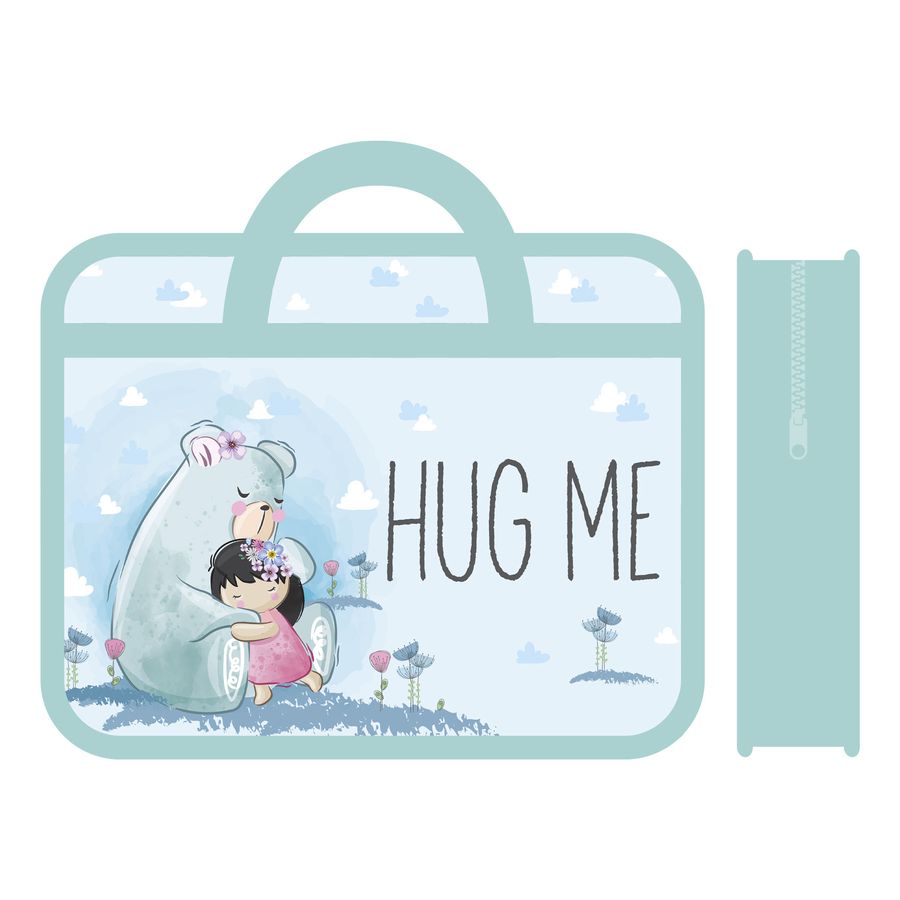 Папка на молнии сверху для тетрадей А4 ПМ-А4-25 Девочка и мишка с ручками ПЧЕЛКА (жен)