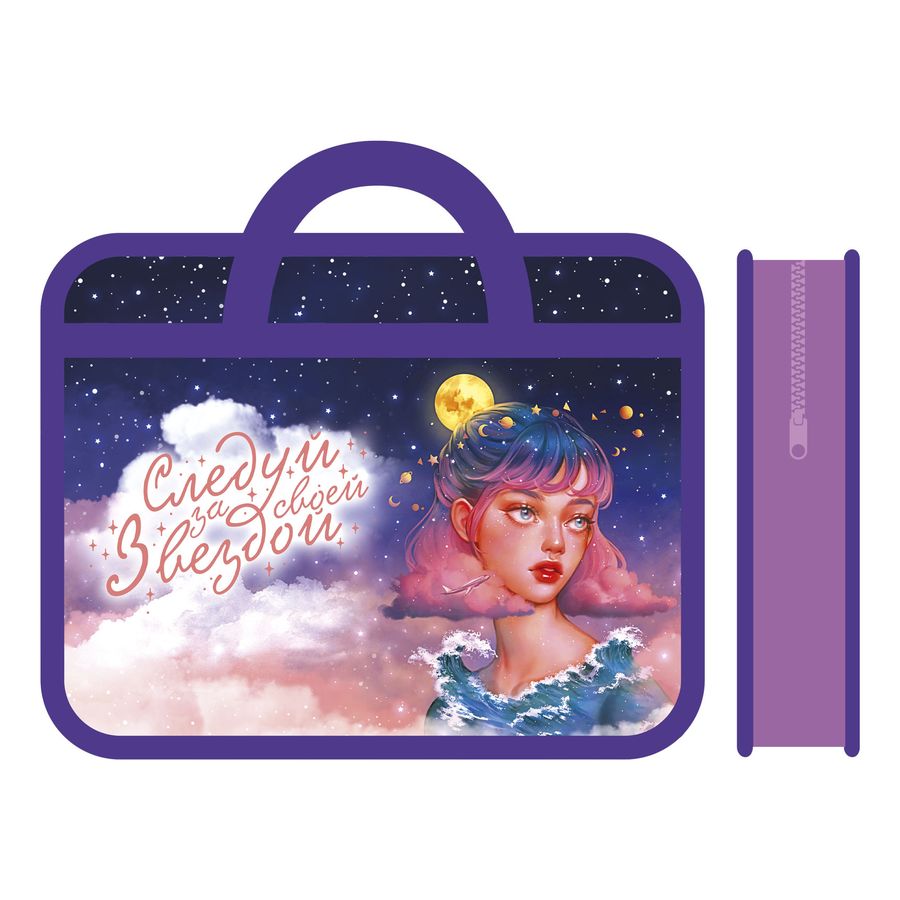 Папка на молнии сверху для тетрадей А4 ПМ-А4-25 Следуй за звездой с ручками ПЧЕЛКА (жен)