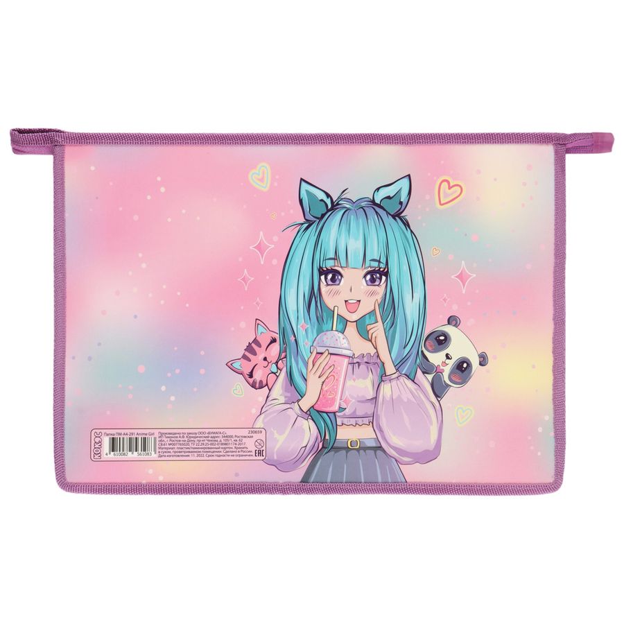 Папка для тетрадей А4 пластик/картон молния сверху 1 отделение Anime Girl КОКОС ПМ-А4-291/230659