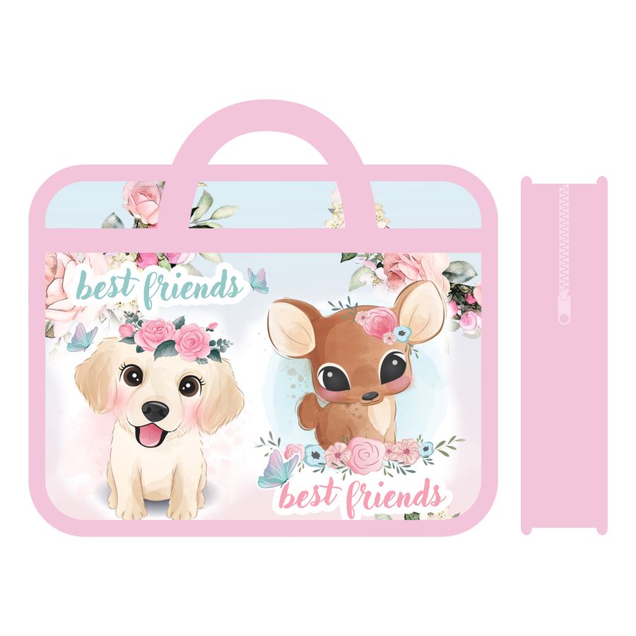 Папка на молнии сверху для тетрадей А4 1отд. ПМ-А4-25 Милые Зверята с ручками ПЧЕЛКА (жен)