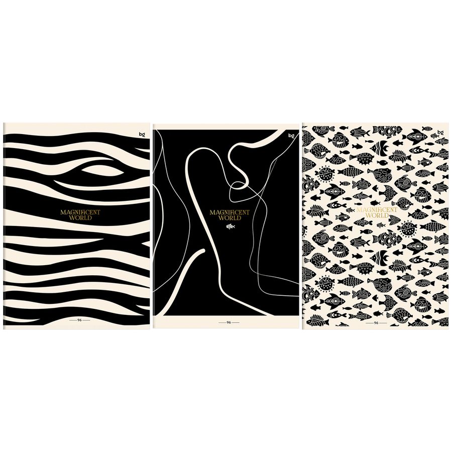 Общая тетрадь BG серии Magnificent world в клетку подходит для ведения конспектов и рабочих записей. Формат изделия — А4 (205*295 мм). Внутренний блок на скрепке состоит из 96 листов офсетной бумаги плотностью 60 г/м2. Белизна — 100 %. Обложка выполнена из мелованного картона, покрыта матовой ламинацией и тиснением фольгой. • Количество листов: 96;• Линовка: клетка с полями;• Формат: А4 (205*295 мм); • Крепление: скрепка;• Плотность блока: 60 г/м2;• Материал обложки: мелованный картон.