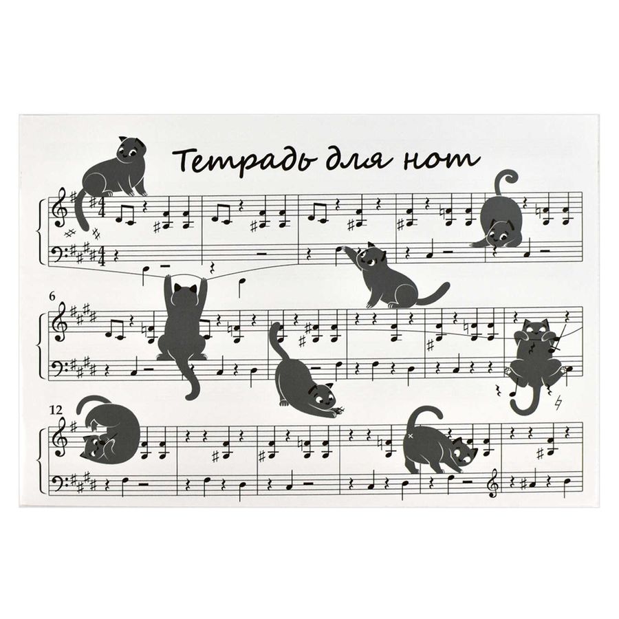 Тетрадь для нот 12 л. арт. 67458 КОТЫ ХУЛИГАНЫ /А4, белый офсет, мягкий переплёт (2 скобы), облож.- мелованная бумага 115 г/м², скобы по короткой стороне.