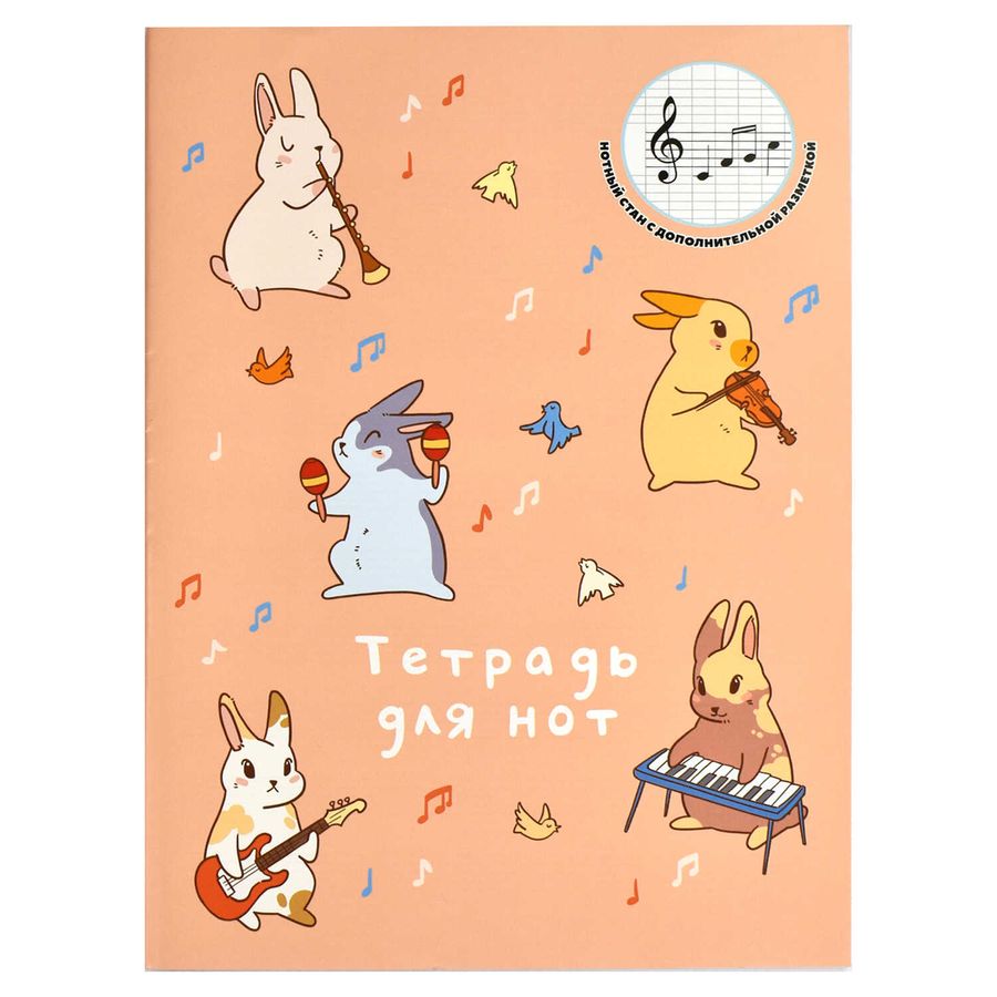 Тетрадь для нот 16 л. арт. 67557 УШАСТЫЙ АНСАМБЛЬ /А4, белый офсет, мягкий переплёт (2 скобы), облож.- мелованная бумага 130 г/м², вспомогательные линии нотного стана для младшей школы.