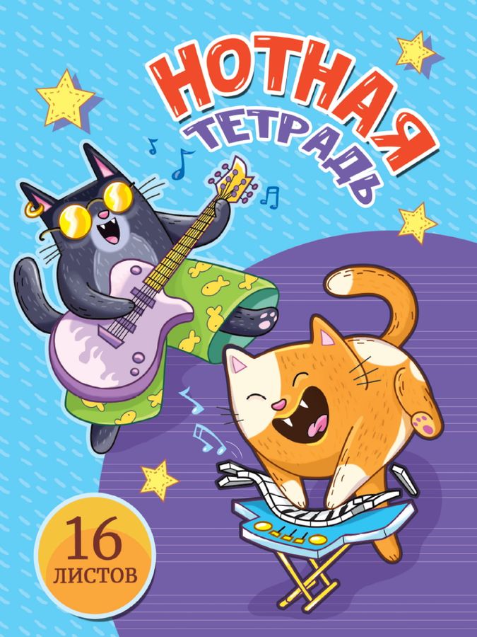 Тетрадь для нот А5 16л вертикальная скрепка Музыкальные коты ПРОФ-ПРЕСС 16-5101