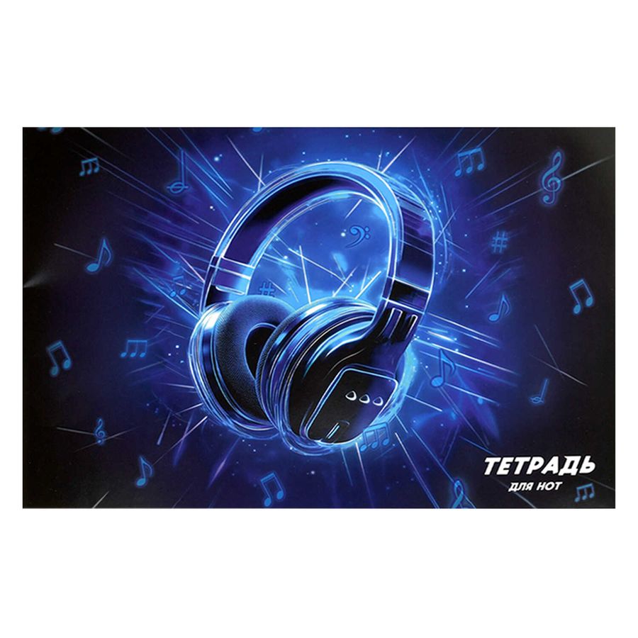 Тетрадь для нот 12 л. арт. 70013 ЛАЗЕРНЫЕ НАУШНИКИ /А4, белый офсет, мягкий переплёт (2 скобы), облож.- мелованная бумага 115 г/м², скобы по короткой стороне.