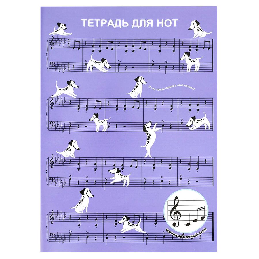 Тетрадь для нот 12 л. арт. 70015 СОБАЧИЙ ВАЛЬС /А4, белый офсет, мягкий переплёт (2 скобы), облож.- мелованная бумага 115 г/м², широкий нотный стан.