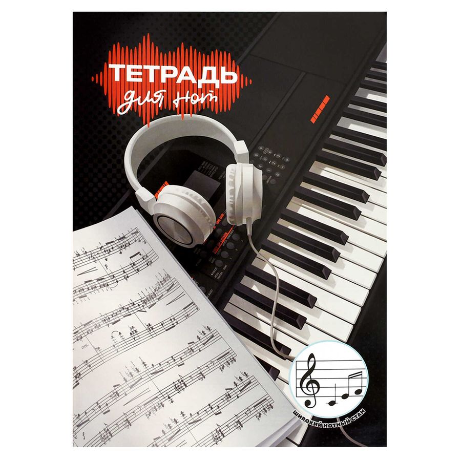 Тетрадь для нот 12 л. арт. 70018 ЦИФРОВОЕ ПИАНИНО /А4, белый офсет, мягкий переплёт (2 скобы), облож.- мелованная бумага 115 г/м², широкий нотный стан.