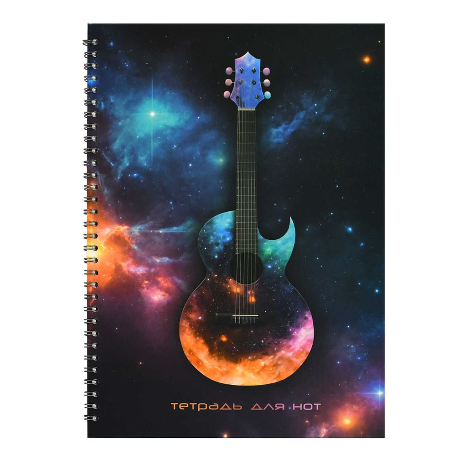 Тетрадь для нот 32 л. арт. 69903 КОСМИЧЕСКАЯ ГИТАРА /А4, белый офсет, гребень по длинной стороне, облож.- мелованный картон 190 г/м², матовая ламинация, матовая ламинация. гребень по длинной стороне.