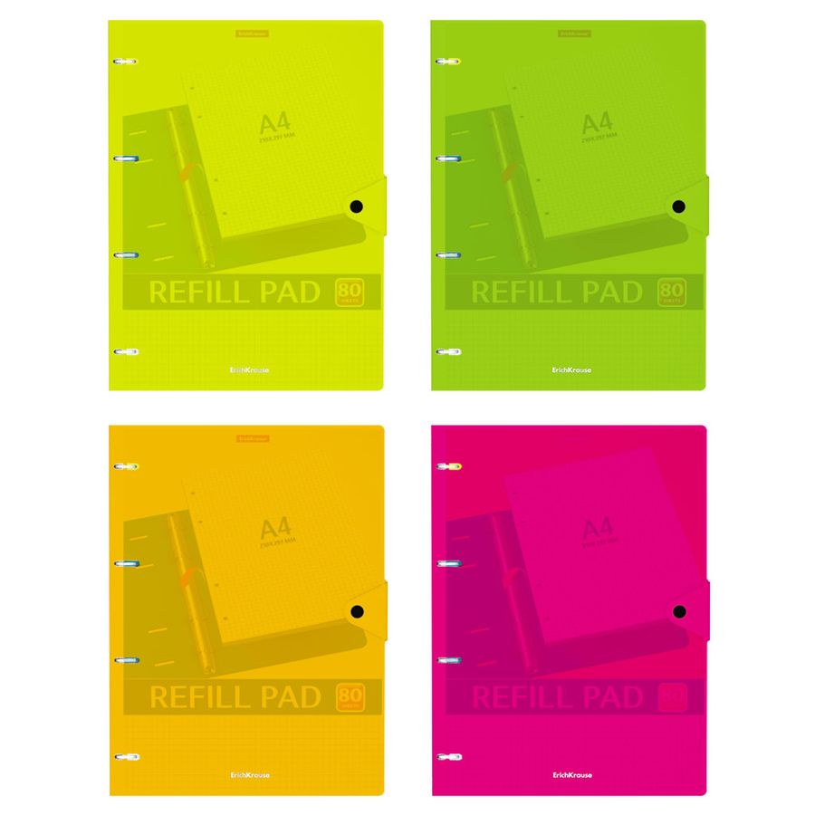 Тетрадь общая формата А4 (210х297 мм). Обложка из высококачественного износостойкого матового пластика с фактурой «песок». Яркие неоновые цвета обложки. В блоке 80 листов в клетку. Бумага офсетная плотностью 60 г/м2. Цвет линовки - синий. Скругленные уголки обложки. Тип скрепления - кольца. Обложка фиксируется клапаном с кнопкой. Прорези под кольца оснащены фиксаторами. Товар поставляется в нескольких вариантах цвета без возможности выбора.