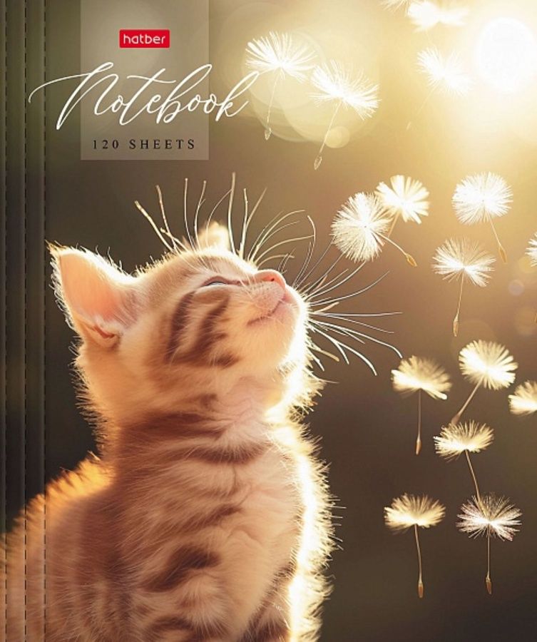 Тетрадь на кольцах А5 120л клетка мелов.картон Солнечный котик глянц.ламин. HATBER 120ТК5В1_32777