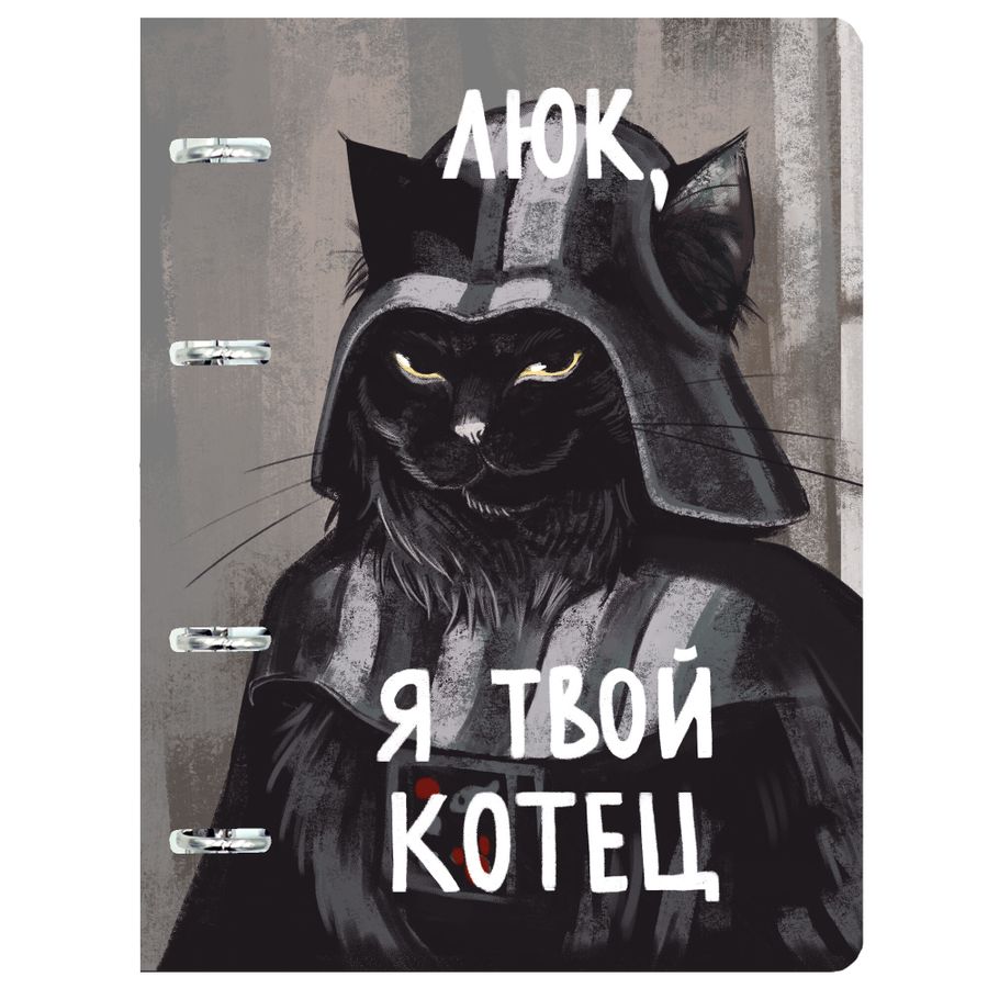 Тетради на кольцах А5 100л. Обложка: пластик, полноцветная печать, тиснение фольгой "серебро". Съемный блок, клетка, бумага офсет 70г/м2. Инд.уп.. "Котец"