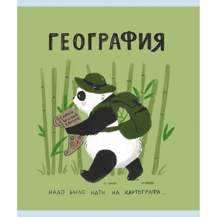 Тетради предметные "Панда" 48л. Скрепка. Клетка/Линия. Обл.мел.картон, многоур.конгрев, выбор.УФ-лак. Бум.оф 60г. справ.мат-лы.титул.лист. Скугл.углы. "Панда. География"