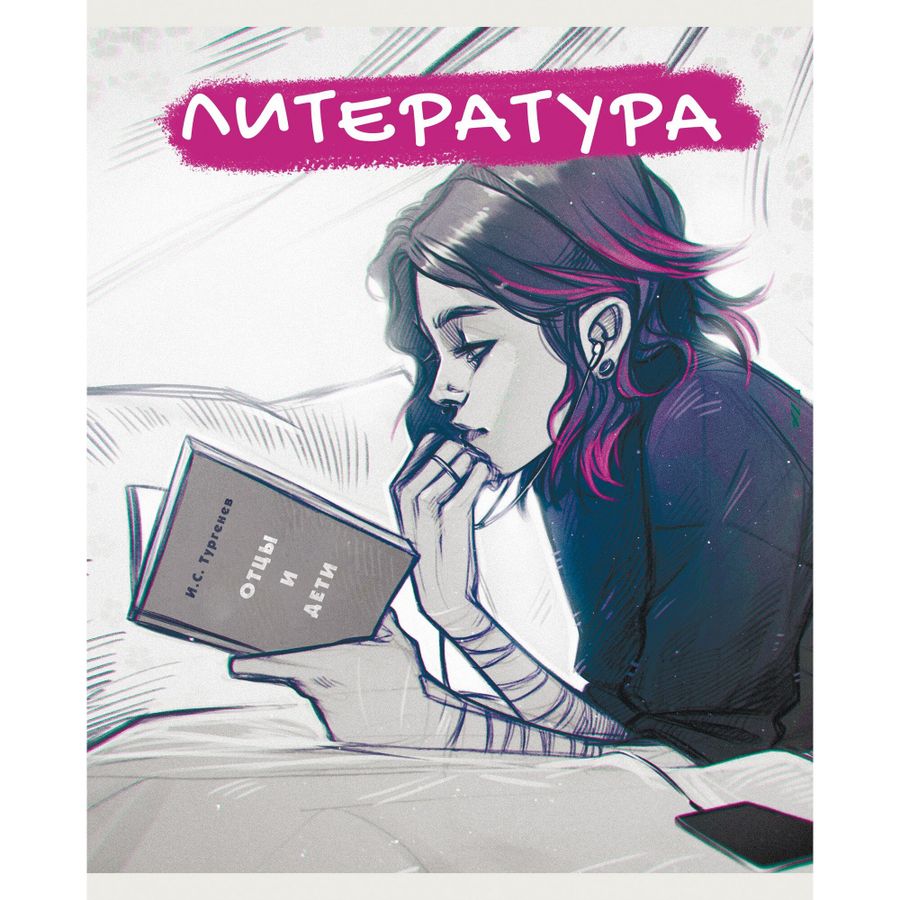 Тетради предметные "MadnessMalina" 48л. Скрепка. Клетка/Линия. Обл.мел.картон, лам.soft-touch, выбор.высок.лак. Бум.оф60г. справ.мат-лы.титул.Скр.угл. "MadnessMalina. Литература"