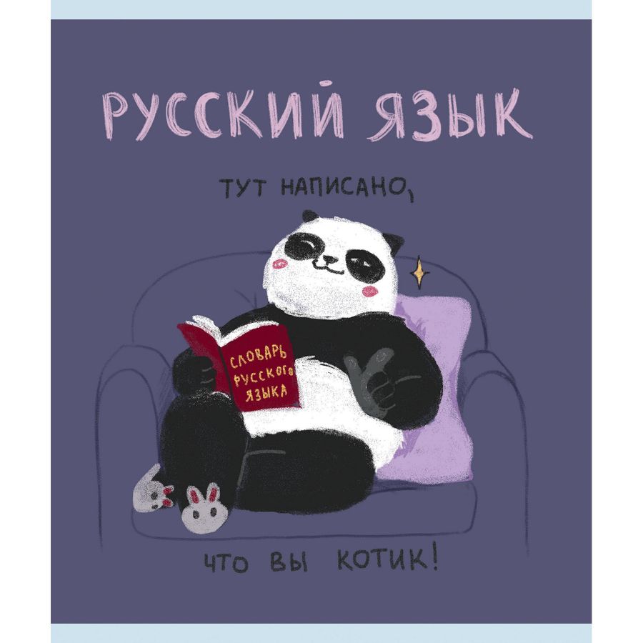 Тетради предметные "Панда" 48л. Скрепка. Клетка/Линия. Обл.мел.картон, многоур.конгрев, выбор.УФ-лак. Бум.оф 60г. справ.мат-лы.титул.лист. Скугл.углы. "Панда. Русский язык"