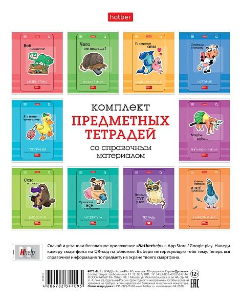Тетрадь предметная комплект 10шт 24л Статусы со справочным материалом HATBER 24Т5Вd