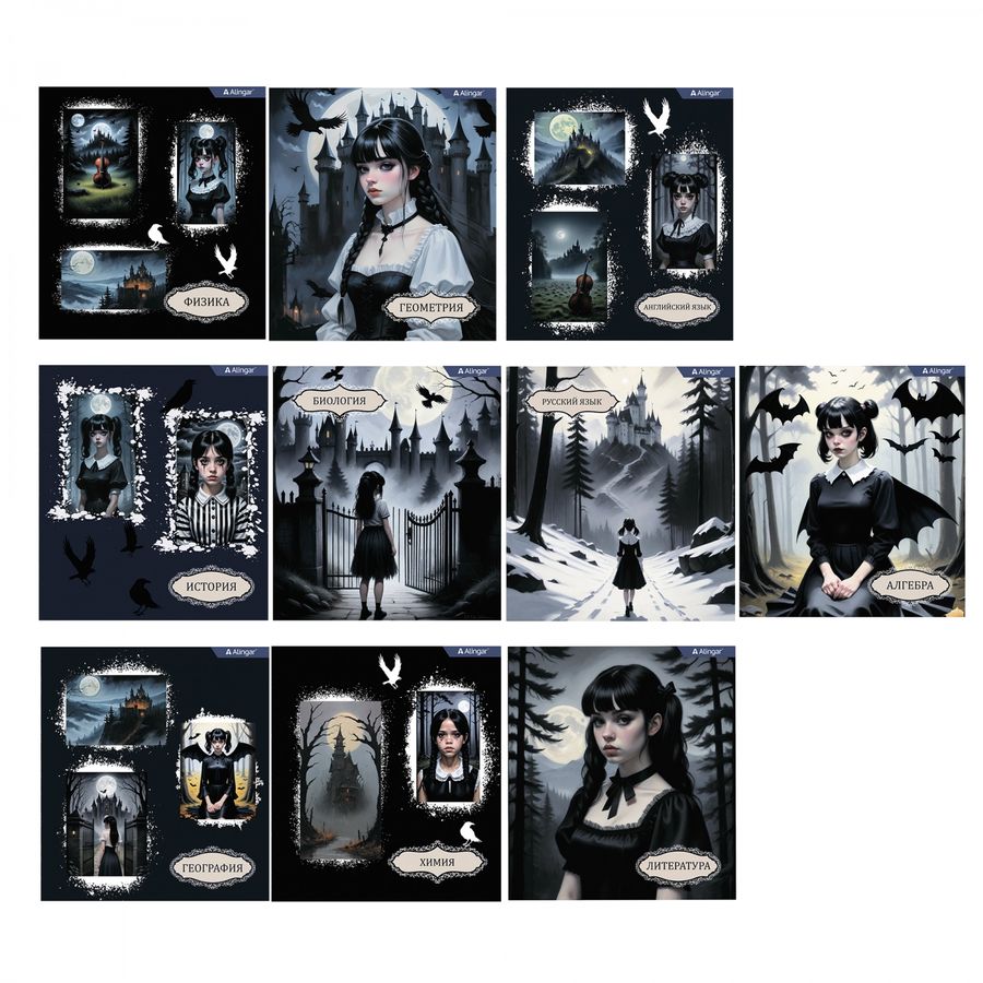Комплект предметных тетрадей А5 48л., 10 предметов, со справ матер, скрепка, мелов. картон (стандарт), блок офсет, Alingar "Mystical wednesday"