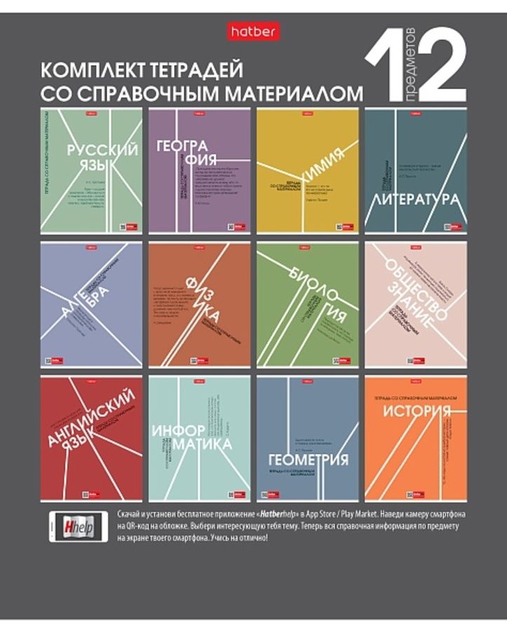 Тетрадь предметная 48л мелов.картон комплект 12шт Стиль 70-х тиснение HATBER 48Т5тВd