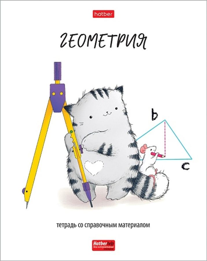 Тетрадь предметная 48л клетка обл.мелов.бум. Приключения кота Пирожка Геометрия HATBER 48Т5Вd1_33032