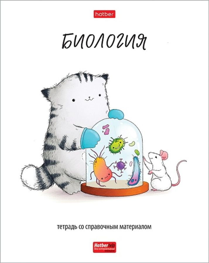 Тетрадь предметная 48л клетка обл.мелов.бум. Приключения кота Пирожка Биология HATBER 48Т5Вd1_33036