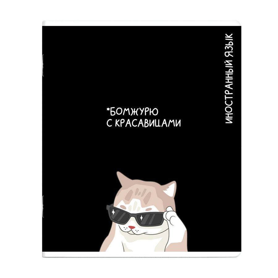 Тетрадь предметная арт. 69829/ 16 «КОТЫ МЕМЫ» ИНОСТРАННЫЙ ЯЗЫК /48 л., А5+, вн.блок - клетка, белый офсет, мягкий переплёт (2 скобы), облож.- мелованный картон 190 г/м², выборочный ТВИН УФ-лак, Подкладные листы со справочной информацией.