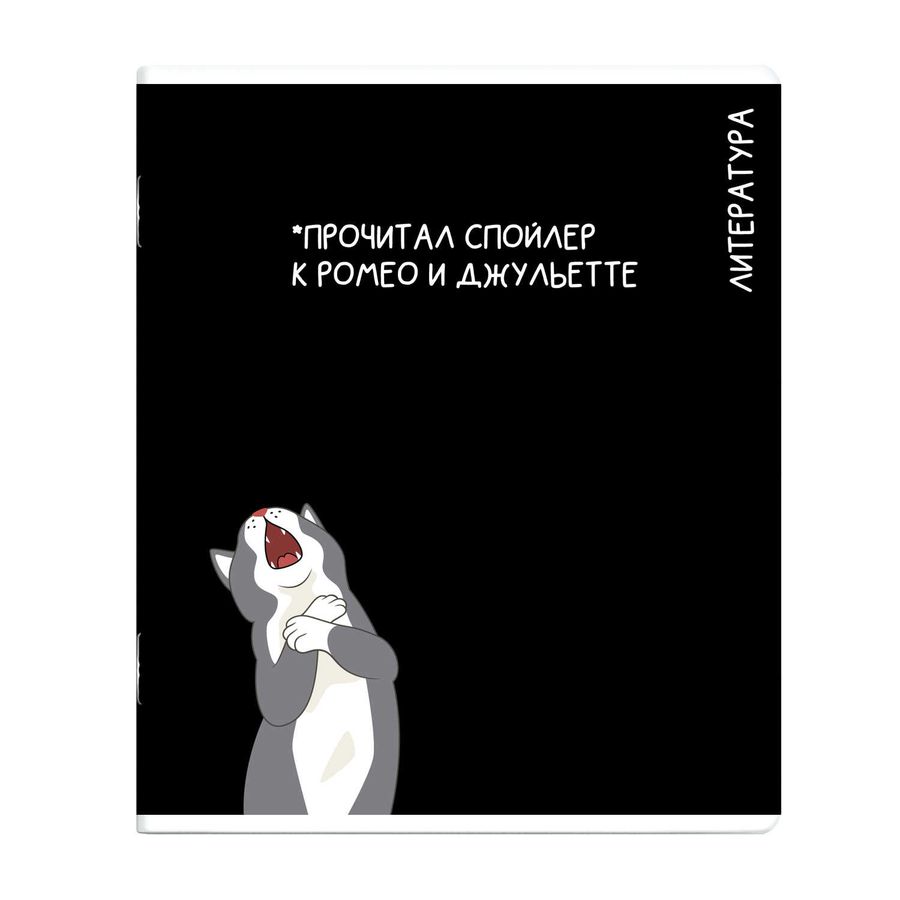 Тетрадь предметная арт. 69832/ 16 «КОТЫ МЕМЫ» ЛИТЕРАТУРА /48 л., А5+, вн.блок - линия, белый офсет, мягкий переплёт (2 скобы), облож.- мелованный картон 190 г/м², выборочный ТВИН УФ-лак, Подкладные листы со справочной информацией.