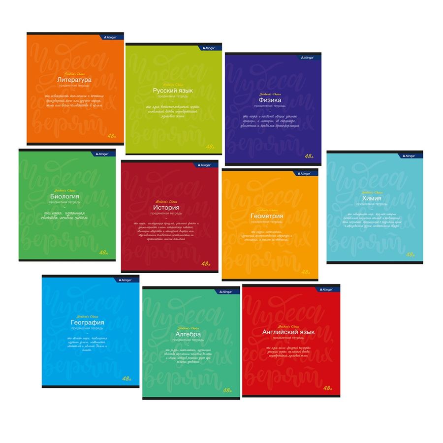 Тетрадь предметная 48л мелов.картон комплект 10шт Student`s choice ALINGAR AL8998