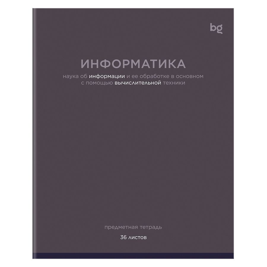 Предметная тетрадь BG «Информатика» со справочной информацией на форзаце и обороте понадобится ученикам 7 класса и старше. Она входит в серию «», в которой представлено 12 тетрадей. Формат изделия — А5. Внутренний блок на скрепке состоит из 36 листов в клетку с полями. В тетради используется офсетная бумага плотностью 60 г/кв.м. Белизна блока — 90-92 %. Обложка выполнена из мелованного картона и имеет прямые углы. Благодаря интересному дизайну тетради серии «»• Количество листов: 36;• Линовка: клетка с полями;• Белизна: 90 %;• Формат: А5;• Крепление: скрепка;• Плотность блока: 60 г/кв.м;• Материал обложки: мелованный картон.