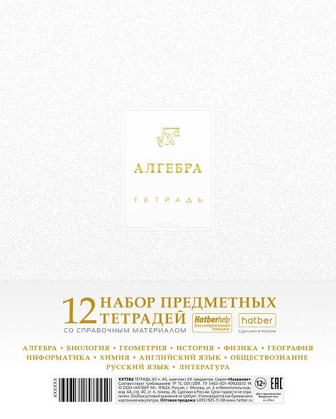 Тетрадь предметная из серии Белое золото (в серии 12 школьных предметов) со справочным материалом. Справочный материал на дополнительных страницах и на оборотной стороне обложки. Внутренний блок- офсет 65 гр.м