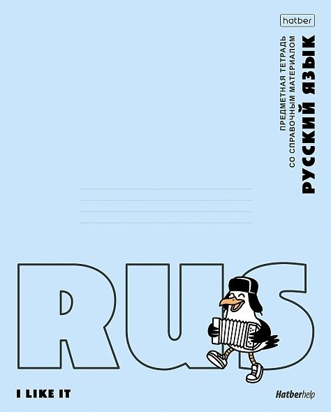 Тетрадь предметная 48л линия пласт.обл. Приключения чайки Русский язык HATBER 48Т5Вd2пл_36039