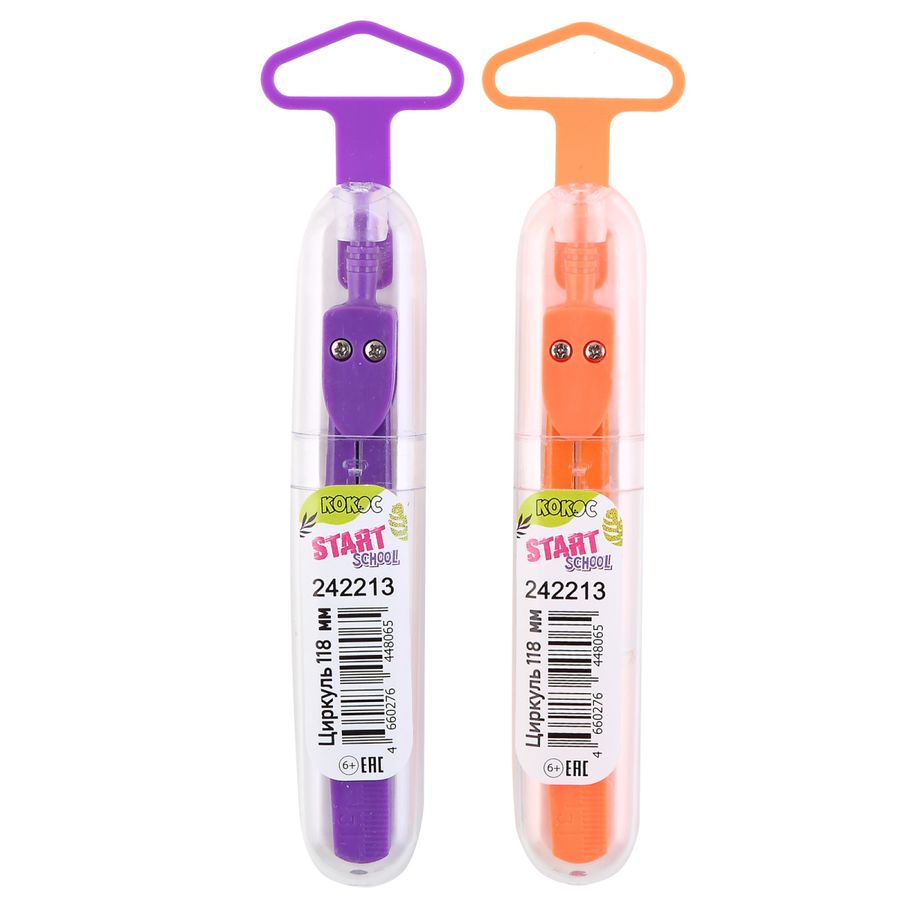 Циркуль металл 11,8см StartSchool пласт.футляр ассорти 2 вида Кокос 242213