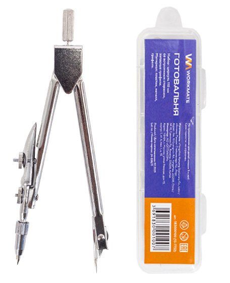 Циркуль металл 11см с грифелем пласт.пенал WORKMATE 15-7752