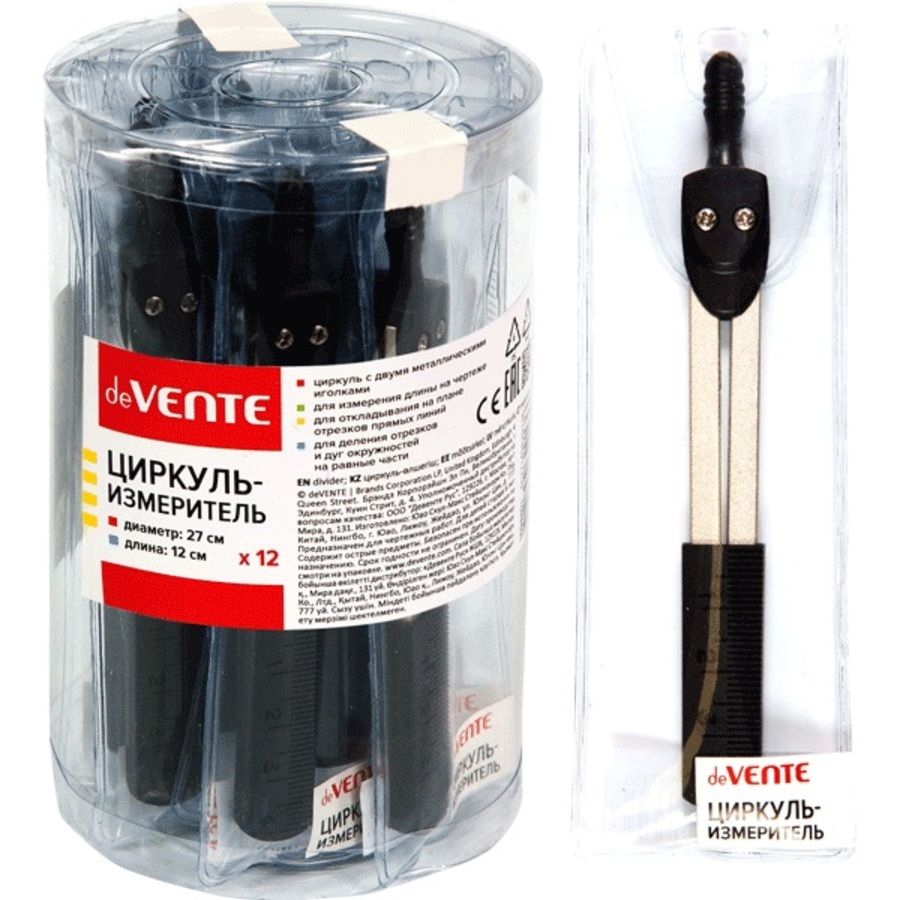 Циркуль-измеритель "deVENTE" с 2-мя металлическими иголками, с защитным чехлом, в футляре из мягкого пластика, черный