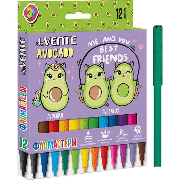 Фломастеры "deVENTE. Avocado" 12 цветов с вентилируемым колпачком, в картонной коробке с подвесом