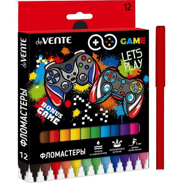 Фломастеры "deVENTE. Game" 12 цветов с вентилируемым колпачком, в картонной коробке с подвесом