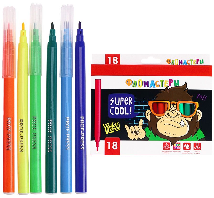 Фломастеры — это друзья детства каждого ребенка! Они не только помогают развитию мелкой моторики, но и способствуют выражению своих эмоций через рисунок! Яркие насыщенные цвета и качество — всё, что нужно для красивого рисунка и хорошего настроения! Фломастеры от компании "Проф-Пресс" представлены в наборе из 18 цветов с вентилируемым колпачком. Продаются в картонной коробке с европодвесом.