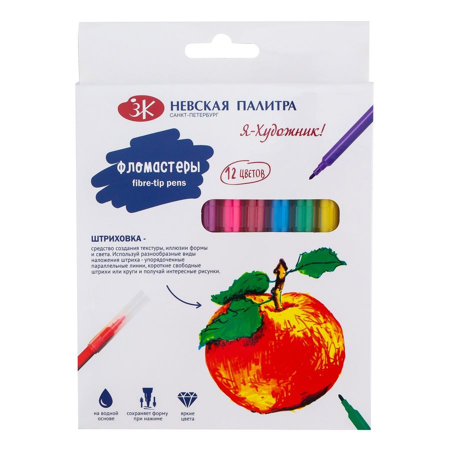 Набор фломастеров "Я - Художник!", 12 цветов в картонной коробке Фломастеры ярких цветов на водной основе, сохраняют форму при нажиме Классический стержень Яркие цвета Длина линии фломастера: 200 м Толщина Линии 2 мм Диаметр ручки 7,2 мм Длина фломастера: 14,5 см