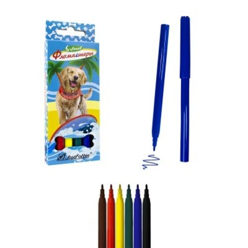 Фломастеры 6цв смываемые круглые вент.колпачок к/к Собака JOSEF OTTEN 6816S-6