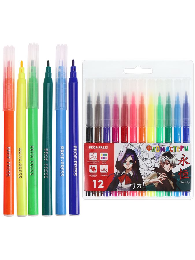 «Аниме» - коллекция в характерном графическом стиле популярных японских комиксов. Учимся быть супергероями! Фломастеры — это друзья детства каждого ребенка! Они не только помогают развитию мелкой моторики, но и способствуют выражению своих эмоций через рисунок! Яркие насыщенные цвета и качество — все, что нужно для красивого рисунка и хорошего настроения! Фломастеры от компании "Проф-Пресс" представлены в наборе из 12 цветов с вентилируемым колпачком. Продаются в пластиковом блистере с европодвесом.