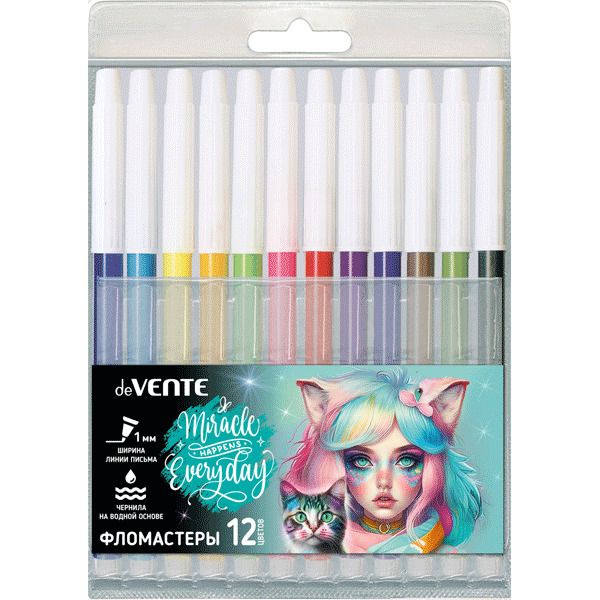 Фломастеры "deVENTE. Miracle" 12 цветов с невентилируемым колпачком, в пластиковом блистере