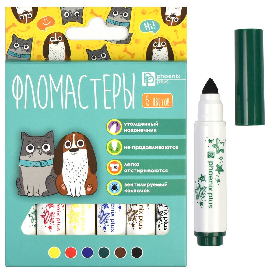 Набор фломастеров арт. 67878 / 12 АРТ-БРАТВА (6 цв., размер упаковки: 9,4х10,6х1,6 см, утолщенные, укороченные, смываемые чернила, вентилируемый колпачок, цвет корпуса: белый, материал: полипропилен, полиэтилен, состав чернил: на водной основе, толщина наконечников: 7,8 мм, картонная коробка с европодвесом и вырубкой).