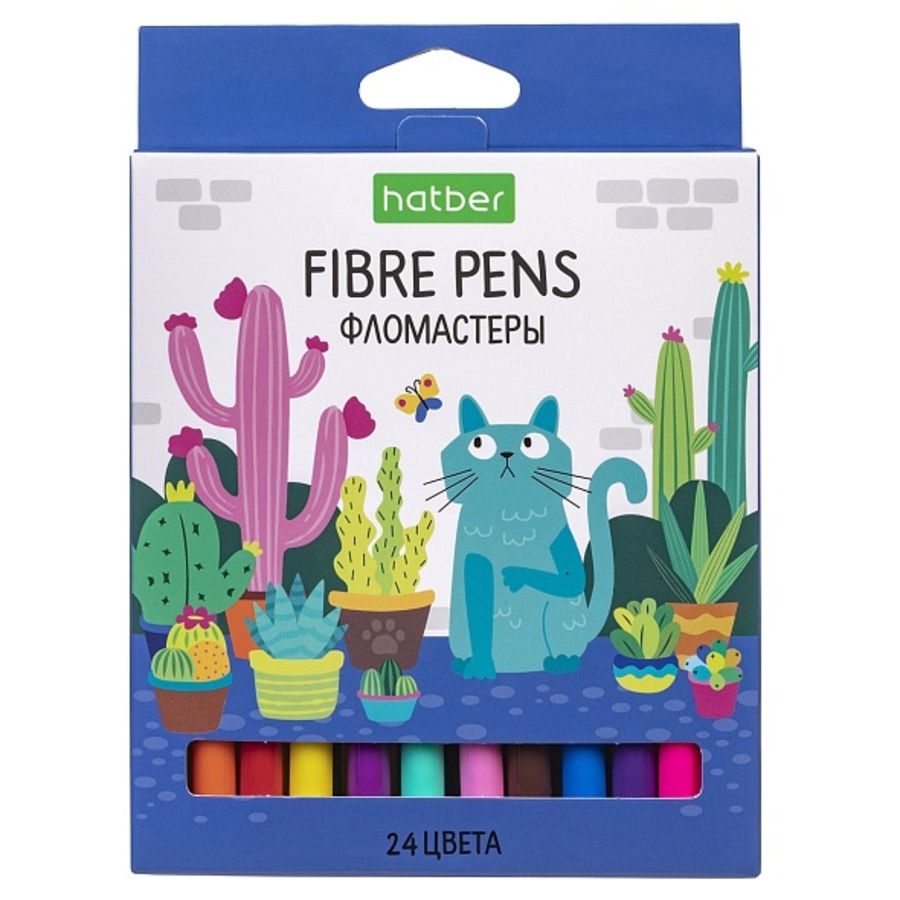 Фломастеры 24цв смываемые круглые конусовид. вент. колпачок к/к Кис-кис HATBER FP_077745