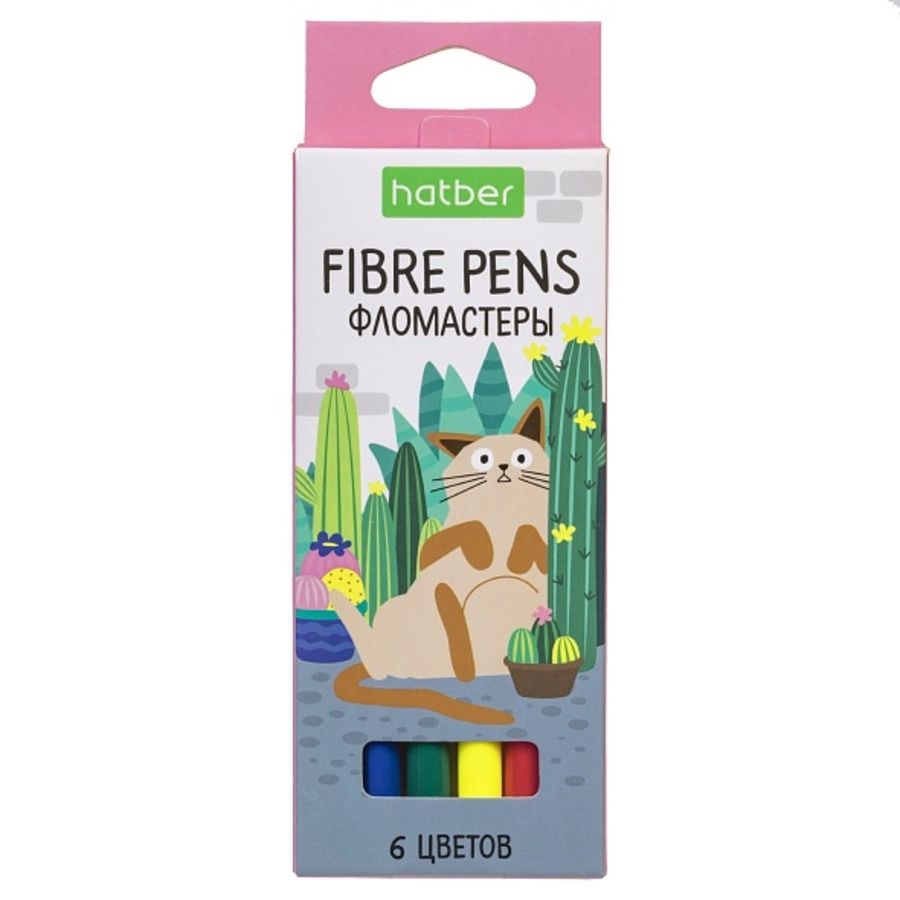 Фломастеры 6цв смываемые круглые конусовид. вент. колпачок к/к Кис-кис HATBER FP_077742